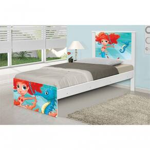 Cama Solteiro Sereia Ruiva Com Colchão Cama Solteiro Juvenil Barcelona Adesivada Sereia Ruiva com Colchão Ref. 1419