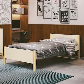 Cama Solteiro Simba Areia Fosco Com Pés Madeira Natural - Reller Móveis Areia Fosco Cama Solteiro Simba com Pés Madeira Natural - Reller Móveis A Cama Solteiro Simba é perfeita para acompanhar a criança até a fase adolescente, possui cabeceira alta e peseira baixa. Ela traz um lindo design, sofisticado e elegante deixando o quarto mais bonito e aconchegante. ESPECIFICAÇÕES: - Estrutura em MDF - Pintura UV atóxica - Pés de madeira - Sem parafusos expostos - Colchão recomendado 188 x 88 cm - Não acompanha colchão - Suporta até 80kg