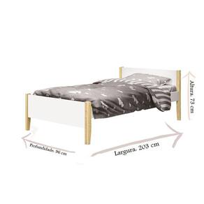 Cama Solteiro Simba Branco Acetinado com Pés Natural – Reller
