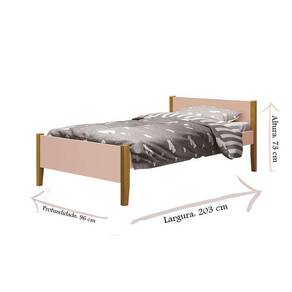 Cama Solteiro Simba Rosa Acetinado com Pés Madeira – Reller