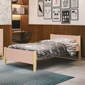 Cama Solteiro Simba Rosa Fosco Com Pés Madeira Natural E Colchão D20 - Reller Móveis Rosa Fosco