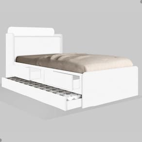 Cama Solteiro Tamires com Cabeceira Baú e com Gavetas é perfeita para economizar espaço e ainda fornecer conforto e qualidade na hora do descanso e recuperar as energias.
