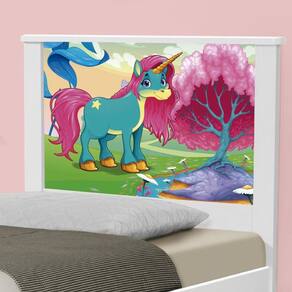 Cama Solteiro Juvenil Barcelona Adesivada Unicórnio Feliz