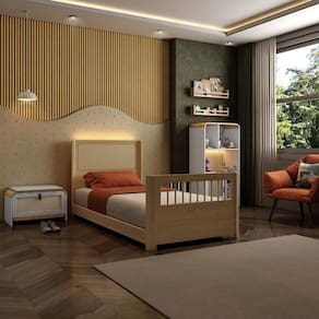 A Cama Solteiro Reversível Montessoriana Wave da Casatema é ideal para criar um ambiente seguro, confortável e estiloso no quarto infantil. Com um design que combina funcionalidade e elegância, esta cama possui cabeceira com detalhe em rattan e peseira no estilo palito, proporcionando um visual moderno e sofisticado. A estrutura montessoriana baixa permite que as crianças tenham autonomia para acessar e usar a cama com segurança. Além disso, sua montagem reversível permite adaptá-la conforme o crescimento e as necessidades da criança. A Cama Solteiro Wave com cabeceira em rattan e peseira palito da Casatema é a escolha perfeita para quem busca um móvel funcional e estiloso, capaz de se adaptar às diversas fases e necessidades do desenvolvimento infantil.