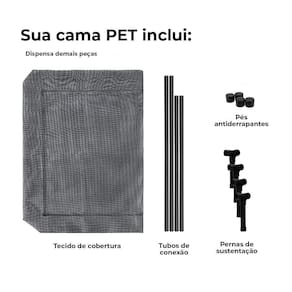 Cama Suspensa Pet Tamanho Gg Para Cães E GatosConforto, Durabilidade e PraticidadeA Cama Pet Elevada visa o bem-estar do seu bichinho, ao mesmo tempo que oferece resistência e facilidade de montar. O tecido respirável de qualidade aliado ao fato de ficar suspensa do chão proporciona uma maior circulação de ar, gerando refrescância e mais conforto ao pet. A altura da Cama Elevada para Cachorro ajuda a prevenir também a formação de calos e dores nas articulações dos cães idosos com displasia ou excesso de peso, possibilitando tranquilidade na hora do descanso.ALGUMAS PERGUNTAS A Cama Pet Elevada é ideal para você que tem cachorro ou gato, ajuda o seu pet a ter um sono melhor pois, a altura em relação ao chão e o tecido respirável, proporcionam um sono mais agradável.O tecido é feito com um material que faz com que ele seja resistente a mordidas e arranhões do seu pet.A Cama Suspensa Pet oferece um maior conforto ao seu bichinho, justamente pelo fato de ser elevada do chão. Os principais benefícios dessa Cama Pet são: - Ela evita o desenvolvimento de problemas nas articulações de seu animal, pois ele não precisa se abaixar para deitar. - Ela faz com que o Pet tenha um sono melhor em dias quentes, uma vez que ele ficará a 15cm do chão. A Cama Elevada para Cachorro e Gato é de fácil montagem. Basicamente, basta conectar o tecido de nylon às barras de alumínio e encaixar as pernas de alumínio nas barras, é bem intuitivo e rápido. Além disso a praticidade de montagem permite que você leve para qualquer lugar que seu pet vá.Características Cama Suspensa Pet:- Tecido resistente a mordidas e arranhões- Evitar pontos de calor, possibilitando assim maior frescor ao seu pet- Maior conforto e reduz o desgaste das articulações do bichinho- Fácil de montar e desmontar, acompanha manual de montagem- Limpeza rápida, simples e fácil- A Cama Elevada Pet suporta animais de até 70 kg- O material das pernas é alumínio- Tecido de SustentaçãoEspecificações Cama Suspensa Pet:Indicação: Cachorro, GatoMaterial: Nylon, Pernas de AlumínioRaça: Raças Pequenas, Raças Médias, Raças GrandesIdade: Filhotes, Adultos, idososDimensões: 104cm x 77cm x 18cmItens Inclusos:- 4 Pernas de alumínio- 4 barras de alumínio- 1 tecido de nylon
