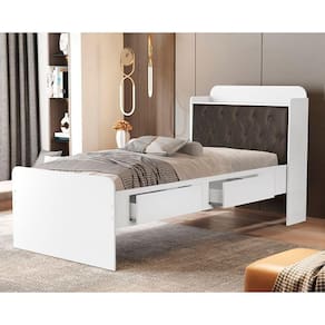 A Cama Tamires Baú 2 Gavetas Solteiro Com Capitonê – VJ Móveis é perfeita para agregar em seu quarto. Seu design moderno e diferenciado, se encaixa perfeitamente na decoração do seu ambiente. Auxilia na organização do seu quarto com gavetas e um baú interno.