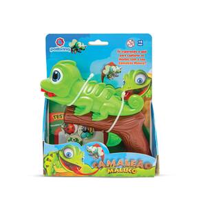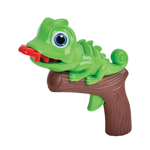 Ao apertar o gatilho, o camaleão maluco ira rapidamente desenrolar sua longa língua, equipada com imãs que o ajudam a pegar insetos