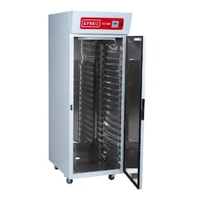 A Câmara Climática Para 500 Pães G.Paniz Inox CC500 G2-220v também conhecida como padeiro noturno, câmara para panificação ou câmaras de fermentação, permitem o controle preciso da temperatura (de 5ºC até 35ºC) acelerando ou retardando a fermentação da massa, reduzindo perdas em virtude de variações climáticas externas e horários de maior movimento nos estabelecimentos. A nova câmara climática CC500, comporta 20 esteiras, na medida 58x70cm, suportando no total 500 pães de 50g. través de seu controlador digital, simples e funcional, é possível programar o aquecimento ou refrigeração da massa diariamente/semanalmente.Com a utilização deste equipamento as massas fermentam ao mesmo tempo, garantindo a uniformidade dos produtos e melhorando o visual dos alimentos expostos aos clientes no estabelecimento. O produto final mantém uma padronização, pois a quantidade de fermento não precisará ser alterada em virtude das variações da temperatura no ambiente externo. A câmara de fermentação possibilita a produção em larga escala de massa, sua estocagem, suspendendo a fermentação e mantendo a qualidade natural do alimento, otimizando a utilização de mão de obra da sua panificadora. Alguns dos diferenciais da câmara climática G.Paniz são o excelente isolamento térmico possibilitado pela injeção de poliuretano expandido em peça única e os sistemas de resfriamento, aquecimento e ventilação otimizados, reduzindo assim o consumo energético e não ressecando o pão. Possui um sensor de nível no reservatório de água que garante a proteção do sistema em caso de falta de água na caldeira externa. Sua estrutura interna é revestida em aço inox 430 ou em alumínio lavrado e externamente pode ser revestida em chapa de aço carbono epóxi branco ou inox 430.