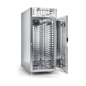 Câmara Climática Termopão Inox com capacidade de 40 Bandejas GCTP1200AI Gelopar. Ideal para supermercados, padarias e similares. Controle da fermentação de pães. Refrigeração: Ar forçado com placa fria. Aquecimento: Resistência blindada. Temperatura: Refrigeração +5 a +10C. Aquecimento +30 a +40C. Controlador eletrônico. Revestimento Interno: Revestimento interno em aço inox 430. Revestimento Externo: Revestimento externo frontal em aço inox 304 e laterais em Aço revestido Tipo Inox. Portas: Cega. Prateleiras Reguláveis. Gabinete com rodízios. Perfeito controle da fermentação de pães, acelera ou retarda automaticamente a fermentação antes de assar. sistema de vaporização que ajuda a umidificar a massa evitando o seu ressecamento. Não recomendado para descongelamento de pães. Acompanha kit redutor para bandejas de 60x40cm. ATENÇÃO: As bandejas não acompanham o produto. CONSUMO: 0,7 kWh (refrigeração)/1,4 kWh (aquecimento). CAPACIDADE: 1000 a 1200 pães/40 bandejas (600x400mm e 680x580mm). PESO: 222kg. DIMENSÕES EXTERNAS(CxAxL): 87,5x210x148cm. Equipamento certificado conforme Portaria Inmetro nº 371/2009. Câmara Climática Termopão Inox com capacidade de 40 Bandejas GCTP1200AI Gelopar é na Atau.