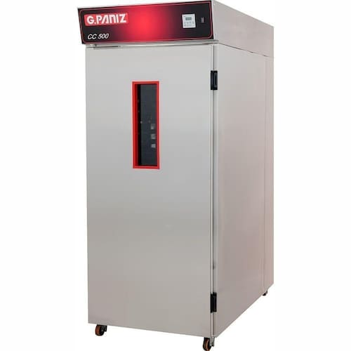 Câmara Crescimento 20 Bandejas Cc500 G.paniz Câmara Crescimento 20 Bandejas 110V Câmara Crescimento 20 Bandejas CC500 G.Paniz. Controla a temperatura, acelerando ou retardando a fermentação da massa. Excelente isolamento térmico possibilitado pela injeção de poliuretano expandido em peça única. Controlador simples e funcional, programável para aquecimento ou refrigeração, possibilitando sua programação diária e semanal. Com sensor de temperatura no interior da câmara. Com sensor de nível no reservatório de água, garantindo proteção ao sistema em caso de falta de água na caldeira externa. Temperatura de 5C até 35C. Menor consumo de energia devido ao espaço interno ser menor, atingindo a temperatura desejada em curto espaço de tempo. Sistemas de resfriamento, aquecimento e ventilação otimizados, reduzindo o consumo energético e não ressecando o pão. Rodízios frontais com trava. Revestimento interno em aço inox 430 ou alumínio lavrado stucco. Estrutura externa em chapa de aço carbono epóxi branco. Temperatura de 5C até 35C. Porta esteiras em inox 430. CAPACIDADE: 20 esteiras no tamanho padrão (58 x 70 cm). CONSUMO: 0,3/1,0kWh. POTÊNCIA: 1/5cv. DIMENSÕES EXTERNAS (CxAxL) - 106,4x200x69,2cm. PESO: 93kg. Equipamento certificado pelo OCP 0070 conforme Portaria INMETRO - 148/2022. Câmara Crescimento 20 Bandejas CC500 G.Paniz é na OverFrio.