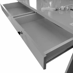 Camarim e Penteadeira Capricho é o produto ideal para te auxiliar no momento da make. Produzido em MDP 15mm, Tampo 25mm, Gavetas com corrediças telescópica, Com chave, Iluminação em LED (inclusa) e Espelho.