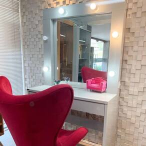 O Camarim Romance é um produto que todos deveriam ter em casa para se embelezar, mas não somente para isso, já que ele possui uma viabilidade enorme, podendo ser utilizado de distintas formas. Ele possui 1 espelho central com 6 lâmpadas de LED que cobre todas as suas laterais e agrega ainda mais charme para esse modelo. Além disso, possui 1 gaveta central com divisórias para maquiagem permitindo a melhor organização de seus objetos na hora de se produzir.