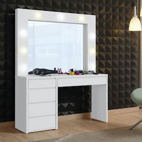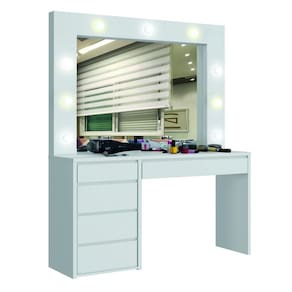 Camarim com Lâmpadas de LED - Berlim-Branco - Mavau Móveis A Camarim Berlim é o ambiente perfeito para quem quer um cantinho especial para se arrumar diariamente. Além de lindo e possuir um desing moderno, é feito em MDF com o tampo e as laterais em 25mm, o que traz resistência e durabilidade para o seu móvel, lâmpadas bivolt em LED, inclusas, e gavetas com corrediças telescópicas e divisórias internas. Aproveite já esse luxo de camarim! Faz parte do anúncio: 1 Camarim com Lampadas de LED - Berlim - Mavau Móveis Obs: Objetos decorativos não acompanham o produto. Particularidades da Penteadeira: Características - Penteadeira MDF - Possui 5 gavetas com corrediças telescópicas - 9 lâmpadas bivolt - Interruptor com tomada embutido - Madeira Ecologicamente Correta - Baseado em conceitos sustentáveis Dimensões da Penteadeira Altura: 1,84 metros Largura: 1,36 metros Profundidade: 45,8 centímetros Informações Importantes: - Produtos podem apresentar diferenças de tonalidades entre a foto na tela e o produto real, devido a calibração de cor de tela. - Limpar com flanela ou pano macio. Não utilizar álcool. Não utilizar produtos abrasivos ou corrosivos. - Nós prezamos pela qualidade da entrega em primeiro lugar, trabalhamos com transportadoras altamente selecionadas e os melhores materiais de embalagem.. -.Todos os produtos vão desmontados, é necessário a montagem por um montador profissional. Não responsabilizamos pela montagem. - Objetos de decoração não incluso. - Certifique-se de que o produto caiba em elevadores e vãos de escadas, não fazemos içamentos ou desmontagens de produtos. Quaisquer despesas deste tipo ficam a cargo do cliente. - Garantia de 3 meses contra defeitos de fabricação. Marca: Mavau Móveis