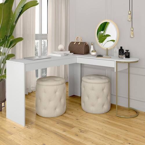 Camarim Em L Industrial Com Led E Espelho Oval Mavi Dourado/bco - M.a - Branco