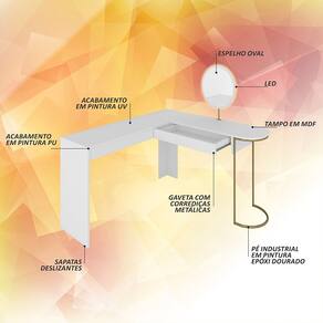 - Tonalidade escrivaninha: Branco- Tonalidade estrutura: Dourado