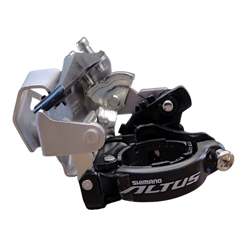 Desenvolvido para transmissões de 2x9 velocidades, o câmbio dianteiro da SHIMANO ALTUS é compatível com o HYPERDRIVE e está disponível nas versões Down Swing e TOP SWING.