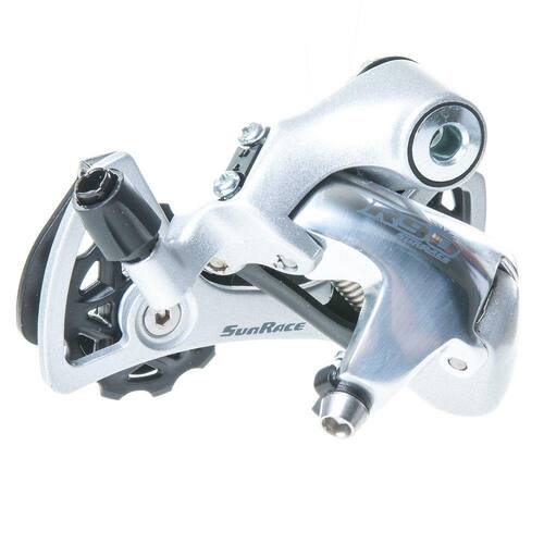 Câmbio traseiro para bicicletas speed / road da marca Sun Race modelo RDR91 SS (short cage para pé-de-velas de 2 velocidades), Adaptável para cassetes de até 28 dentes, peso aproximado de apenas 250gr, para 9 velocidades, construído em partes de alumínio e aço, Adaptável com sistemas de transmissão da Shimano e SRAM. Produto com excepcional acabamento, disponível para pronta entrega apenas na cor cinza com prata.