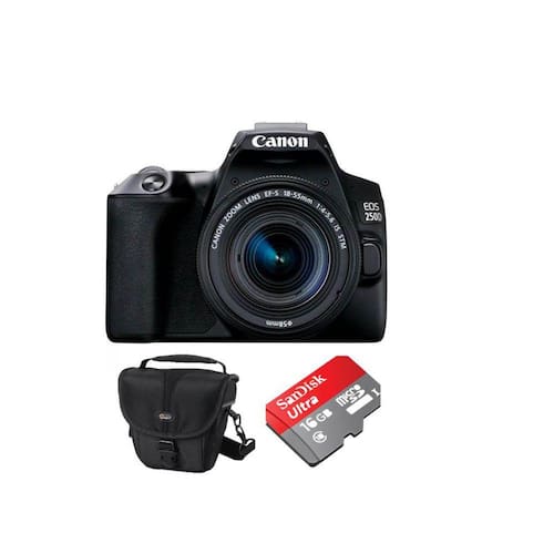 Câmera Fotográfica EOS 250D e Lente 18-55mm Canon Preta A Câmera EOS 250D da Canon é uma DSLR leve e versátil que apresenta um sensor de 24,1 megapixels, processador de imagem DIGIC 8 para excelentes capturas de foto e vídeo em alta resolução, nitidez e clareza de imagens, conectividade wi-fi e bluetooth para o fácil compartilhamento de conteúdo quando emparelhada com seus dispositivos móveis, ecrã tátil de ângulo variável para melhor desempenho e enquadramento, bem como a versatilidade da objetiva 18-55mm que oferece estabilização de imagem para fotografias e vídeo, elemento asférico de alta precisão para reduzir distorções cromáticas em toda a faixa de zoom e proporcionar os melhores resultados. Especificações: Cor: Preta Marca: Canon Relação de aspecto: 3:2 Temperatura operacional: 0 – 40 °C Dimensões: 122,4 x 92,6 x 69,8 mm Sensor: CMOS de 22,3 mm x 14,9 mm Pixels Efetivos: Aprox. 24,10 megapixels Total pixels: Aprox. 25,80 megapixels Filtro "Low-Pass": Incorporado/fixo Sistema de limpeza integrado EOS Tipo do Filtro de Cores: Cor primária bateria de íons de lítio recarregável LP-E17 Especificações Objetiva Tamanho de Filtro: 58mm Ajuste do Foco: Sistema de focagem interno Construção da Lente: 13 elementos em 11 grupos Alcance Focal e Abertura Máx.: 18-55mm 1:3.5-5.6 Ângulo de Observação Diagonal: 74°20' - 27°50' Distância Focal mais Próxima: 0.82 pés / 0.25m Dimensões: 69.0 x 75.2mm, aprox. Itens Inclusos: 1x Bateria 1x Cabo de energia 1x EOS 250D Canon 1x Manual do usuário 1x Carregador 1x Alça de ombro 1x Objetiva 18-55mm Garantia: 90 dias Venda condicionada a existência de produto em estoque.