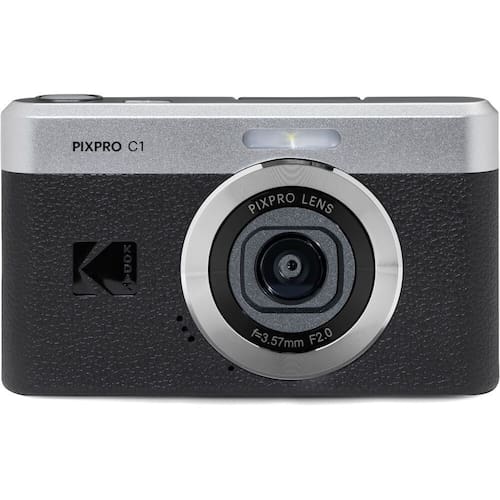 A câmera digital compacta PIXPRO C1 da Kodak é um modelo clássico do tipo "apontar e disparar" com lente fixa e componentes internos modernos e eficientes. Com sua lente grande angular de foco fixo de 26 mm f/2 e sensor CMOS BSI de 1/3" e 13 MP, é fácil tirar fotos nítidas e coloridas em diversas condições de iluminação. A câmera possui flash embutido e uma tela LCD de 2,8" que inclina 180° para selfies ou fotos em qualquer ângulo. Ela também grava vídeos em 30 ou 60 fps com resolução Full HD (1920 x 1080). Recarregue a bateria interna com o cabo USB-C incluso e esteja sempre pronto para fotos espontâneas.
