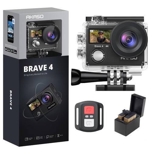 Câmera de ação akaso Brave 4 4 K 20 MP WiFi Sony sensor Ultra HD Eis 30 m; Câmera Subaquática à prova d'água; Filmadora remota Subaquática com 2 Baterias; kit de acessórios