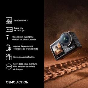 A DJI Osmo Action 4 Standard Combo é uma câmera de ação desenvolvida para capturar vídeos e fotos com alto nível de detalhamento, mesmo em ambientes desafiadores. Equipada com sensor maior de 1/1.3, ela entrega excelente desempenho em baixa luminosidade, cores mais vivas e maior alcance dinâmico, ideal para aventuras, esportes radicais, viagens e produção de conteúdo profissional.