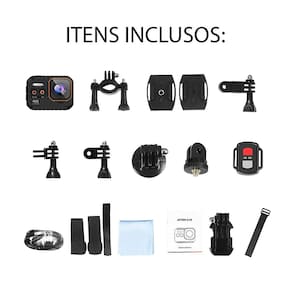 MODO WI-FI E CONTROLE REMOTO 2.4G: Dispondo de conexão Wi-Fi, que permite interação com seu smartphone ou tablet para controlar suas principais funções através de aplicativo, visualizar imagens em tempo real, reprodução de fotos e compartilhamento de conteúdo selecionado e muito mais, sem precisar de um computador. Acompanha ainda um controle remoto 2.4G, que ativa as principais funções da câmera em até 10 metros de distância, fazendo com que seja muito mais fácil registrar suas manobras ou tirar uma selfie.