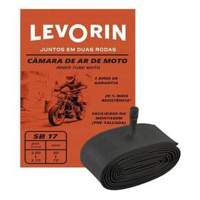 As câmaras de ar Levorin são produzidas com um blending de elastômeros naturais e sintéticos que garantem mais impermeabilidade (resistência à permeabilidade do ar de inflação), resistência mecânica (furos, rasgos, etc) e reparabilidade (possibilidade de efetuar consertos de furos).