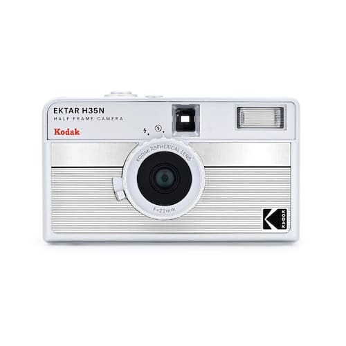 KODAK Câmera de filme de meia moldura EKTAR H35N, 35 mm, reutilizável, sem foco, função de lâmpada, filtro estrela integrado, lente melhorada revestida (filme e bateria AAA não incluídos) (prata - ? Filtro de estrela embutido: fotografa pequenas fontes de luz para criar um reflexo de quatro feixes em pontos de luz. - Lente de vidro revestida e melhorada: um elemento da lente de vidro aguça a clareza das imagens. - Função da lâmpada (longa exposição): ajuda a capturar o rastro de objetos em movimento, principalmente à noite. - Orifício do tripé: usa um tripé para manter sua câmera estável para suportar fotografias de longa exposição. - Película, bateria AAA, liberação de cabo e tripé não estão incluídos no produto.