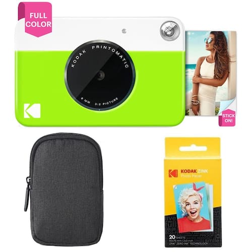 - Impressão em uma parada – a câmera Kodak Printomatic instantaneamente imprime fotos de 2 x 3 polegadas. A câmera usa papel fotográfico Kodak Zink, então não são necessários cartuchos de tinta, toners ou filme. As impressões de fotos são duráveis, resistentes à água, resistentes a rasgos e sem manchas