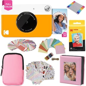 Pacote de presente com câmera de impressão instantânea KODAK Printomatic Full-Color + Estojo flexível + Papel fotográfico adesivo de zinco 2x3, pacote com 20 unidades, álbum, conjuntos de adesivos, molduras de adesivos, molduras suspensas, marcadores, presente divertido - Amarelo - Fotografia com