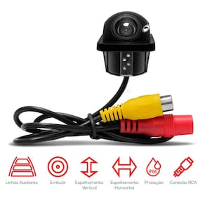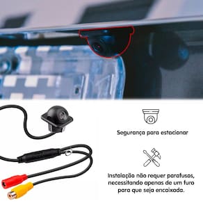 - Design Prático: O formato "tartaruga" da câmera é compacto e versátil, ideal para uso como câmera de ré ou internamente.