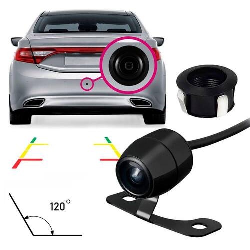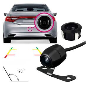 Imagem Colorida; Resolução: 480p; 120º de Visão; Barras Fixas para Auxiliar as Manobras; Impermeabilidade IP67/IP68; Sistema de vídeo NTSP/PAL; Tensão de Trabalho: 9-12V; Alimentação: 12V (bateria do carro).