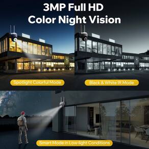 Camcamp Câmera de segurança com fio de 3 MP, câmera complementar externa para câmera de segurança doméstica com fio, sistema externo com monitor de toque WiFi de 7 polegadas, sem necessidade de WiFi, sem taxa mensal, visão noturna colorida de 360°, gravação 24 horas por dia, 7 dias por semana. Principais características: gravação de som 24 horas por dia, 7 dias por semana, 24 horas por dia, 7 dias por semana, gravação de som sem interrupção + conversa bidirecional 3 MP colorida/visão noturna IR + detecção humanóide inteligente sem necessidade de internet + tela sensível ao toque de alarme de aplicativo Monitor + visualização remota portátil Conexão WiFi sem fio estável 360 graus cobertura total de anjo + 5x zoom IP66 à prova d'água + acesso remoto micro SD/loja na nuvem + compartilhamento familiar mais cenas adequadas Lista de embalagem: 1x câmeras Dome sem fio PTZ 1x adaptador de alimentação (12V/1A) para câmera sem fio - Câmera expansível para monitor NVR e período de garantia de 1 ano: esta câmera de segurança Wi-Fi ptz com fio externa é Camcamp câmera complementar para um sistema de câmera de segurança sem fio com monitor touchscreen de 7 polegadas (ASIN: B0C6KRW4XZ), que pode adicionar até câmeras de 4 canais. Oferecemos um período de substituição de 12 meses, apenas aproveite a melhor experiência de compra conosco - Imagem HD de 3 MP e visão noturna colorida: o sistema de câmera de segurança com fio com monitor equipado com um sensor CMOS de 1/3 polegada e tecnologia de redução de ruído 3D, que mostra imagem HDR pura e delicada de 3 MP (2340 x 1296 p). Com 4 peças do holofote, ao ligar, você pode ver imagens do transeunte e da placa em cores à noite dentro de um alcance de 20 pés - Anjo completo de 360 graus e conversa bidirecional: Ambas as câmeras de segurança PTZ sem fio cobrem uma panorâmica de 355 graus, inclinação total de 90 graus, sem canto cego. Você também pode clicar para ampliar livremente para obter mais detalhes. O microfone de qualidade integrado do monitor NVR sem fio também, você pode falar com os visitantes através da tela do monitor e obter vídeos com som nítido - Detecção de movimento/zona humanóide inteligente e alertas de aplicativos: a câmera de segurança com fio com monitor adota movimento humanóide avançado e detecção de zona personalizada, mantendo menos alarmes falsos e notificações mais precisas. Uma vez ativado, você receberá uma notificação instantânea do aplicativo e um clipe do vídeo de movimento, você nunca perderá nenhuma filmagem importante - Gravação de som ininterrupta 24 horas por dia, 7 dias por semana e compartilhamento multiusuário: o sistema de câmera de segurança com fio com monitor oferece gravação de vídeo contínua 24 horas por dia, 7 dias por semana com som, substituindo automaticamente as filmagens antigas quando o cartão micro SD estiver cheio. Basta uma digitalização no aplicativo CloudEye 365, então você pode facilmente compartilhar momentos felizes com sua família