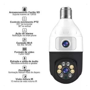 PRINCIPAIS CARACTERISTICAS: Detecte todos os movimentos que acontecem na sua casa com nosso sistema de monitoramento inteligente. Movimente sua câmera em todas as direções e tenha observação de todos os ângulos que quiser, garantindo máxima cobertura de segurança. O sistema de monitoramento inteligente pode ser programado para disparar o alarme da câmera, avisando você no aplicativo sobre qualquer movimentação suspeita na sua casa. 1x Câmera lente dupla 1x Suporte para Fixação bocal E27 1x Manual de Instruções 1x Pacote de Acessórios de Instalação Buchas e Parafusos Homologação Anatel: 060792000160 Marca: Goldenmix