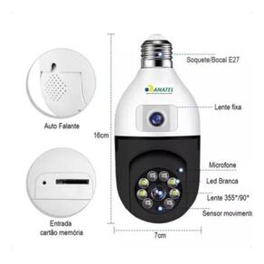 Proteja sua casa com a mais avançada tecnologia de monitoramento: a Câmera Lâmpada Inteligente com Lente Dupla Desenvolvida de maneira única para manter você conectado e seguro, esta câmera revolucionária utiliza o sistema elétrico de lâmpadas para oferecer vigilância em qualquer lugar Instale nossa Câmera Lâmpada como se fosse uma lâmpada comum e desfrute de proteção discreta e eficaz em toda a sua casa. Com a capacidade de controlar e monitorar remotamente através do aplicativo dedicado, você terá total tranquilidade onde quer que esteja.