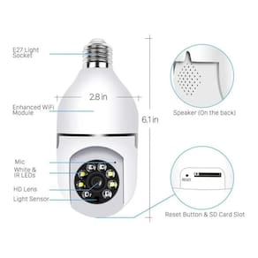 DESCRIÇÃO DO PRODUTO. -Câmera para sistema de segurança -Design elegante e moderno -Controle suave de giro e inclinação A cabeça da câmera é giratória -Você pode controlá-la por meio do aplicativo e obter uma visão panorâmica. -A câmera é integrada com microfone e alto-falante -Modo noturno: visão noturna infravermelha+LED colorido -Ângulo de visão: 360° (horizontal) /90° (vertical) -Suporta tela multiusuário Compatível com Android iPhone IOS, smartphone, tablet, etc. -Inclui soquete. -Câmera WIFI de grande angular HD 1080P -Armazenamento: cartão 128G (não incluído) -Suporta 4 visitantes on-line simultaneamente. -Local de montagem: Soquete -Sem cabos ou conexões, basta colocar em qualquer soquete -APP recomendado YCC365PLUS -- Inclui um soquete para colocar em qualquer lugar, se desejar. -Detecção de movimento e alarme de sirene instantâneo - A câmera enviará um alarme instantâneo de aplicativo quando o movimento for detectado. ESTAMOS NO ARCASHOPPING