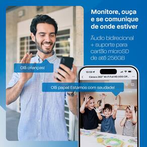 • Áudio Bidirecional e Armazenamento Local Seguro: Fale e escute em tempo real com o áudio bidirecional integrado. Armazene gravações com segurança usando cartão microSD de até 256GB (não incluso).