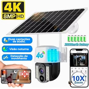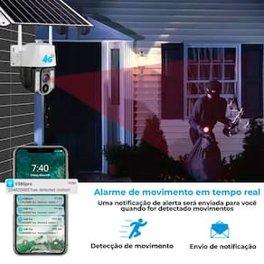 Principais Características: Resolução de 8MP Full HD: Captura de vídeo em alta definição, garantindo imagens claras e detalhadas.Painel Solar Integrado: Carregamento contínuo da bateria interna, permitindo uso prolongado sem conexão elétrica.Conectividade Wi-Fi de 2.4GHz: Conexão sem fio estável, facilitando a instalação e o acesso remoto.Detecção de Movimento PIR: A câmera é ativada automaticamente quando detecta movimento, iniciando a gravação e enviando alertas para o seu smartphone.Áudio Bidirecional: Comunicação em tempo real, permitindo que você fale e escute através da câmera, ideal para interações remotas.Visão Noturna Avançada: Monitoramento eficaz mesmo em condições de baixa luminosidade.Design Resistente ao Clima: Construção robusta que suporta diferentes condições climáticas, garantindo durabilidade e confiabilidade ao ar livre. Especificações Técnicas: Resolução: 8MP Full HDConectividade: Wi-Fi 2.4GHzDetecção de Movimento: Sensores PIR com notificação em tempo realÁudio: Bidirecional com microfone e alto-falante integradosAlimentação: Painel solar com bateria interna de grande capacidadeResistência: Construção resistente às intempéries, ideal para uso externoInstalação: Fácil instalação com suporte para montagem em diversas superfíciesEsta câmera é ideal para quem busca segurança e praticidade, com a vantagem de um sistema de energia autônomo e sustentável. Monitore sua casa ou empresa de qualquer lugar com a Câmera de Segurança IP Externa com Painel Solar e garanta proteção constante com alta qualidade de imagem e funcionalidade.