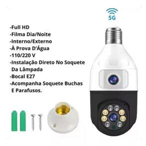 PRINCIPAIS CARACTERISTICAS: Detecte todos os movimentos que acontecem na sua casa com nosso sistema de monitoramento inteligente. Movimente sua câmera em todas as direções e tenha observação de todos os ângulos que quiser, garantindo máxima cobertura de segurança. O sistema de monitoramento inteligente pode ser programado para disparar o alarme da câmera, avisando você no aplicativo sobre qualquer movimentação suspeita na sua casa. 1x Câmera lente dupla 1x Suporte para Fixação bocal E27 1x Manual de Instruções 1x Pacote de Acessórios de Instalação Buchas e Parafusos Homologação Anatel: 060792000160 Marca: Goldenmix