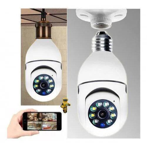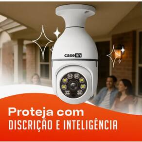 camera de segurança Câmera de Segurança Lâmpada com Visão 360° – Monitoramento Inteligente e Discreto\nA câmera de segurança tipo lâmpada é a solução ideal para quem busca praticidade, segurança e discrição em um só produto. Com design que se encaixa diretamente em bocais de lâmpada convencionais (soquete E27), ela combina perfeitamente com o ambiente, sem chamar atenção.\nEquipada com lente olho de peixe de 360 graus, oferece cobertura completa do ambiente, eliminando pontos cegos. Conta ainda com visão noturna por infravermelho, detecção de movimento e conectividade Wi-Fi, permitindo que você acompanhe tudo em tempo real pelo celular por meio de aplicativo compatível.\nEspecificações do produto:\nPeso aproximado: 200 gramas\nDimensões: 15 cm x 7 cm x 7 cm\nAlimentação: Bivolt (via soquete E27)\nVisão panorâmica 360°\nResolução HD (alguns modelos podem chegar a Full HD)\nVisão noturna infravermelha automática\nÁudio bidirecional (microfone e alto-falante integrados)\nConexão via Wi-Fi (2.4GHz)\nCompatível com aplicativos para Android e iOS\nCom fácil instalação, basta rosquear no soquete da lâmpada e configurar pelo app. Ideal para residências, escritórios, comércios e áreas comuns. Segurança moderna com instalação simples e sem necessidade de cabeamento.
