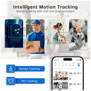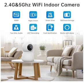 A Câmera Interna 1080P BabyPet com WiFi acompanha cada movimento do seu bebê ou animais de estimação de forma clara através do aplicativo móvel. Com lente grande angular de 105 graus, rotação horizontal de 355 graus e vertical de 90 graus, oferece cobertura completa de 360 graus. Detecta movimentos e envia alertas em tempo real. Possui visão noturna em até 10 metros, áudio bidirecional para comunicação em tempo real e armazenamento em nuvem ou cartão SD. Compatível com Amazon Alexa.