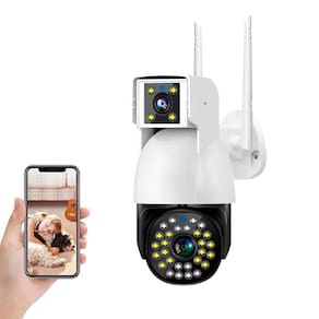 Câmera de segurança dupla com sensor infravermelho e de movimento Câmera dupla: equipada com lentes duplas, monitoramento de ponto fixo, monitoramento panorâmico de inclinação, para capturar mais detalhes da cena, detalhes de longe e de perto em um piscar de olhos. Full 1080P HD e visão noturna colorida A câmera de segurança é de vídeo diurno full HD 1080p e visão noturna colorida; a câmera de vigilância tem 12 LEDs de luz branca, que podem gravar vídeos em cores claras à noite. Rotação PTZ, monitoramento de várias áreas: a câmera pode ser girada para cima e para baixo, para a esquerda e para a direita. Ilumine através do aplicativo móvel, a rotação horizontal é de 320° e a rotação vertical é de 90°. Detecção de movimento, alerta sonoro e luminoso, alarme de celular: 6 luzes brancas embutidas e 6 luzes infravermelhas. A luz acende automaticamente. Quando ocorre uma intrusão anormal na área monitorada, as informações do alarme serão enviadas para o site móvel em tempo real. Intercomunicador bidirecional: captador de fidelidade integrado, gravação de som, restaura a cena real. Ponto de acesso sem monitoramento de rede: A câmera vem com uma função de transmissão de ponto de acesso WIFI e o telefone pode ser conectado ao ponto de acesso A-P da câmera para abrir o aplicativo e ver quando não há rede (o ponto de acesso suporta tela de 10 m e o monitoramento remoto não é compatível). Reprodução remotaO vídeo armazenado no cartão de memória pode ser visualizado remotamente por meio do aplicativo móvel, ou o cartão de memória pode ser retirado para visualização no celular ou no computador.