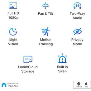 - Visão noturna avançada - Durma com tranquilidade sabendo que o Tapo está vigiando sua casa e seus filhos, mesmo à noite. A visão noturna infravermelha avançada permite que o Tapo veja em condições de pouca luz a até 30 pés de distância.