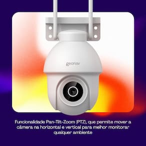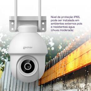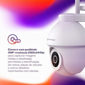 A Câmera externa 360 Inteligente Wi-Fi Geonav foi desenvolvida para oferecer proteção residencial e garantir o cuidado com as pessoas que mais amamos, mesmo à distância. Todas as funções são controladas pelo aplicativo Hi by Geonav, permitindo a movimentação e visualização em tempo real com imagens de alta qualidade em 4MP. Além disso, o aplicativo oferece notificações de detecção de movimento e acesso às gravações armazenadas em um cartão micro SD ou na nuvem, mediante assinatura. Possui microfone e alto-falante integrados, que permite se comunicar no ambiente. Com a tecnologia Wi-Fi ou cabeado é possível instalar a câmera em paredes ou tetos e escolher a melhor opção conforme a infraestrutura do local. Seu design é minimalista e para ambientes externos, como entrada principal, jardins, piscinas, garagens e estabelecimentos comerciais. A visão noturna com leds oferece uma vigilância eficaz em ambientes com baixa luminosidade. O aplicativo Hi by Geonav permite a pré-visualização de até 16 câmeras simultaneamente ou 9 câmeras através da web, no computador. Além disso, a câmera é compatível com cenas e até mesmo com comando de voz para visualização das imagens em tempo real através da Echo Show da Amazon. - Rede sem fio: Wi-Fi 2.4GHz, padrão IEEE 802.11b/g/n - Rede com fio: RJ45 (10/100) - Protocolos de segurança: WEP/WPA/WPA2 - Câmera com Pan-Tilt-Zoom (PTZ) para monitoramento Externo; - Ângulo de 355 na horizontal e 96 na vertical; - Qualidade 4MP (resolução de 2560x1440p) e sensor CMOS 1/2,8" para melhor imagem e definição; - Possibilidade de uso fixado no teto ou parede; - Compatível com Echo Show(Alexa); - Sensor de movimento para gravação, áudio bidirecional e visão noturna. - Função sirene (Alerta sonoro) e notificação via app ao detectar movimento; - Função rastreamento de movimento (opcional via app); - Zoom Digital: 10x; - Multicanal: até 16 câmeras no aplicativo ou no computador até 9 câmera via Web; - Criptografia de segurança e acesso; - IP65; - Homologado Anatel. Ângulo de visão: 104 Rotação e inclinação da câmera: Horizontal de 355 e vertical de 96 Possui visão noturna: Sim Resolução: 3K Resolução de captura de vídeo: 2560x1440p Formato de captura de vídeo: Protocolo fechado Tamanho da memória flash instalada: Até 128 GB Tipo de memória flash: MicroSD (não incluso) Compressão de vídeo: H.265 Taxa de Quadros: Até 20 fps Tecnologia do sensor fotográfico: CMOS Resolução final: 4 Faixa de visão noturna: Até 10 metros Consumo em funcionamento: 5W Consumo em repouso: =5W Tensão de entrada: 5VCC Corrente de entrada: 1A Potência de entrada: 5W Modelos de dispositivos compatíveis: iOS e Android Tipo de controle: Aplicativo Hi by Geonav Tipo de alerta: Sonoro e mensagem pelo aplicativo Distância do movimento: Até 4 metros Controle de voz: Amazon Alexa e Google Assistente Tecnologia de conectividade: Wi-Fi Frequência do Wi-Fi: 2.4GHz Alcance do Wi-Fi: =30m Conteúdo da embalagem 1 Câmera; 4 Parafusos; 4 Buchas; 1 clip de reset; 1 Fonte de alimentação USB - 5V 1A; 1 Manual do usuário