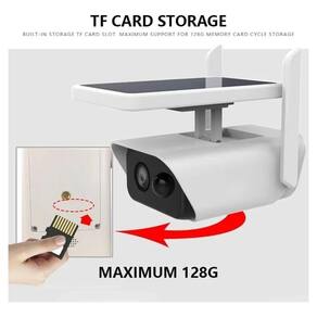 Resolução: 2 megal pixels 1920x1080 Ângulo: 120 Lente: 3,6 mm3 Conectividade: wi-fi Suporte a cartão de memória: sim até 128gb Proteção à prova d'água: ip66 Bateria: 18650 mah Stand-by: 180 dias Aplicativo android e ios : icsee