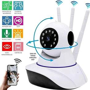 Camera Baba Eletronica Bebe E Pet 3 Antenas Ip Wifi 360