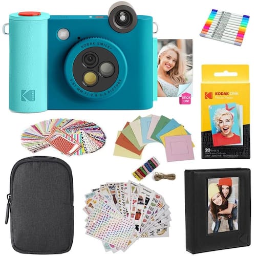 KODAK Smile+ Pacote de presente para câmera de impressão instantânea digital 2 em 1 e impressora fotográfica + capa + papel fotográfico adesivo Zink 2 x 3 pacotes com 20 álbuns + conjuntos de adesivos