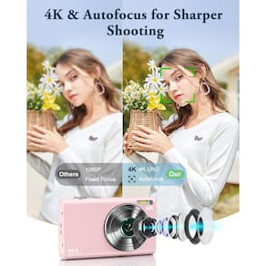 IMPORTANTE: Se for um produto elétrico, ele pode ser compatível com uma tomada de 110 volts. Se utilizado fora dos Estados Unidos, pode ser necessário um conversor de voltagem para garantir a operação adequada. Verifique se o produto que você está comprando é elétrico antes de considerar essas informações. Câmera digital IGXHAVIZ, câmera de vlog com foco automático 4K com cartão de 32 GB, câmera digital de apontar e disparar de 48 MP com flash, zoom 16X, câmera compacta antivibração para adolescentes e adultos iniciantes (rosa) -?O foco automático encontra a perfeição em 4K?Projetada para fotógrafos que valorizam a simplicidade e a qualidade, esta câmera digital oferece gravação de vídeo em 4K e captura de fotos de 48 MP, garantindo que cada detalhe seja nítido e realista. O foco automático facilita a focagem, ideal para fotos e movimentos. Compacta e fácil de usar, esta câmera digital 4K é sua companheira diária para capturar memórias. Perfeita para adolescentes, adultos e iniciantes, é a câmera digital que atende às necessidades de todos -?Poderosa e de bolso?Não se deixe enganar pelo tamanho compacto: essa câmera digital compacta é excelente. Com zoom digital de 16X, essa câmera digital de apontar e disparar garante fotos nítidas de objetos distantes. A estabilização de imagem mantém suas fotos sem desfoque e o flash embutido ilumina cenas com pouca luz. Com temporizador automático (2/5/10s), captura contínua e detecção facial, esta câmera digital compacta 4K é perfeita para fotografia em qualquer lugar, completa com 20 filtros criativos para facilitar o aprimoramento -?Operação simples e transferências fáceis?Experimente a clareza e a conveniência de uma tela de 2,8 polegadas. A tela desta câmera digital oferece imagens nítidas e controles intuitivos, simplificando a captura e a revisão de suas imagens. Quando chegar a hora de compartilhar, transfira facilmente suas fotos usando o cabo Tipo C incluído para carregamentos rápidos no computador ou opte por um leitor de cartão de memória (não incluído) para mover convenientemente as fotos do cartão de memória da câmera digital para o seu dispositivo móvel -?Pronta para uso e totalmente equipada?Esta câmera digital para fotografia vem com tudo o que você precisa para começar a fotografar imediatamente. O cabo e o adaptador tipo C tornam o carregamento rápido e conveniente onde quer que você esteja. Com duas baterias recarregáveis, você pode fotografar o dia todo sem se preocupar com a falta de energia. Além disso, o pacote de câmera digital vem com um cartão micro SD de 32 GB, fornecendo amplo armazenamento para todas as suas memórias mais queridas -?Serviço imbatível e presente ideal?Desfrute de um ano inteiro de suporte abrangente, garantindo uma experiência sem preocupações com nossas câmeras digitais portáteis. Procurando o presente ideal para um ente querido? Essa câmera digital é uma ótima opção para quem adora capturar momentos especiais da vida, de fotógrafos iniciantes a criadores experientes. Seu design elegante, fácil funcionalidade e recursos o tornam um presente fantástico para qualquer ocasião. Além disso, funciona como uma webcam para videochamadas, streaming ou aulas on-line