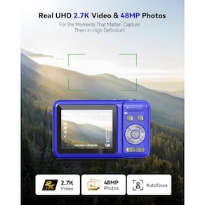 UHD de 2,7 mil e fotos de 48 MP - capture detalhes impressionantes em vídeos de 2,7 mil e fotos de 48 MP. Esteja você gravando aventuras ou criando conteúdo para mídias sociais, esta câmera digital sempre oferece resultados vibrantes e nítidos