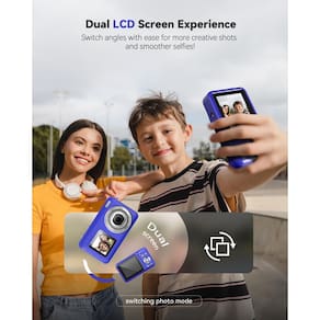 - Câmera digital com tela LCD dupla atualizada - Alterne facilmente entre selfies e paisagens com o design LCD de tela dupla. Desfrute de zoom de 18X, 20 filtros, lapso de tempo, anti-vibração, equilíbrio de luz, modo burst, foco automático e flash. Perfeito para retratos, cenas de ação e momentos criativos — liberando imaginação ilimitada